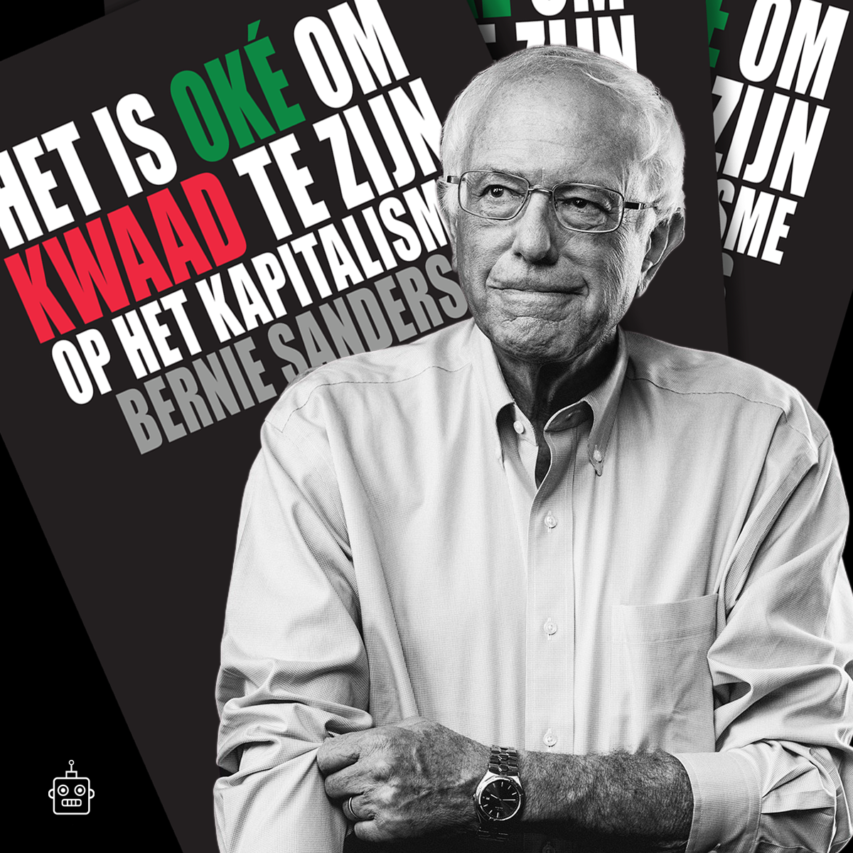 De burgemeester van Leiden, Peter van der Velden geeft een kort welkomstwoord om het evenement af te trappen. Hierna zal universitair docent van de Universiteit Leiden Sara Polak het woord overnemen om de bezoekers mee te nemen in een historisch overzicht van Bernie Sanders. Daarna vertelt historicus van Amerikaanse betrekkingen, en assistent professor aan de Universiteit Leiden, Michael Schmidli, kort wat over de boodschap uit het nieuwe boek ‘Het is oké om kwaad te zijn op het kapitalisme’.