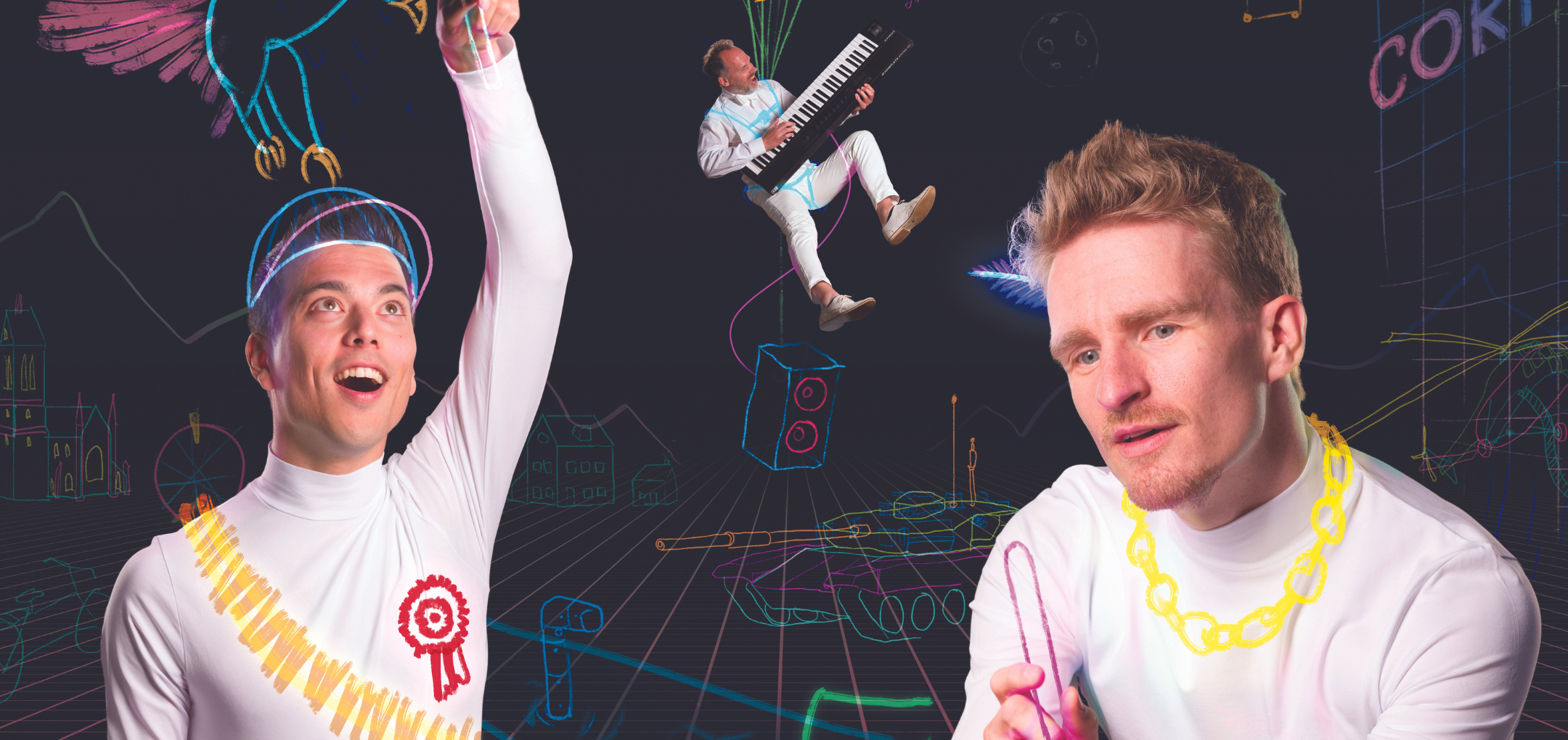 Elke avond beginnen cabaretiers Andries Tunru (finalist De Slimste Mens en winnaar van o.a. de Persoonlijkheidsprijs van Cameretten) en Stefan Hendrikx (winnaar van het Leids Cabaret Festival, bekend van de TV-programma’s Alpacas en Hufterproef) weer met absoluut niks. Een blanco canvas waarop zij, geïnspireerd door jouw input, een compleet universum ontvouwen. Met de spannendste verhalen, de scherpste grappen en muzikaal omlijst door multi-instrumentalist Joep Hullegie. Niets ligt vast en alles kan. De meest verrassende voorstelling van het jaar!